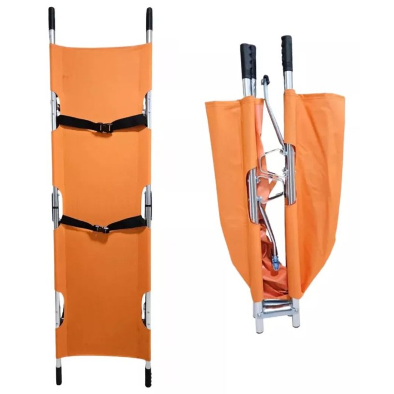 Lámina de PVC de alta calidad se caracteriza por su resistencia al fuego y al agua, material de tubería de aleación de aluminio de alta calidad. Plegable. Cuenta con dos cinturones de seguridad para asegurar al paciente.